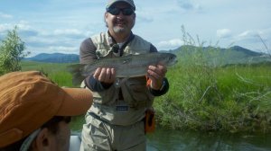 By the end of our float, we had brought a dozen fish to the boat, with Birddog clearly in the lead, outfishing me 2-to-1. His first fish, a dam scarred rainbow was perhaps the best piggie of the day and gorgeous specimen indeed.