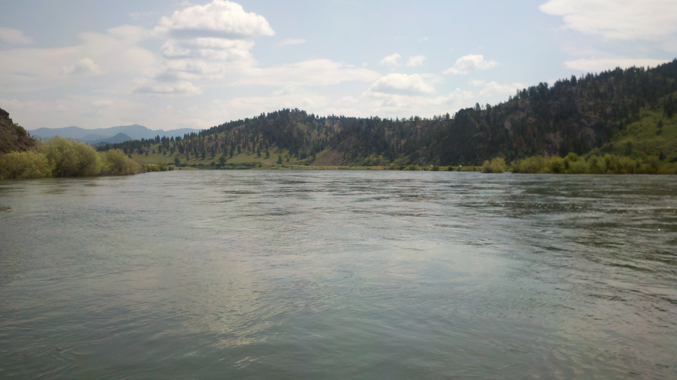 My friend the Birddog (aka Don Hurley of www.donhurleyoutdoors.com fame) and I were floating down the seriously-swollen-but-still-clear Missouri River, in late June, fishing perhaps the only fishable trout waters in theWestern United States. On the oars we had our own Big Man, guide/outfitter Dan Kelly who calls Wolf Creek, Montana his home. The other Big Man, the one anchoring the E-Street Band passed away that very day, but we had the Big Man we needed. It was our second day on the water and Tramps like us, Baby we were Born to Fish.